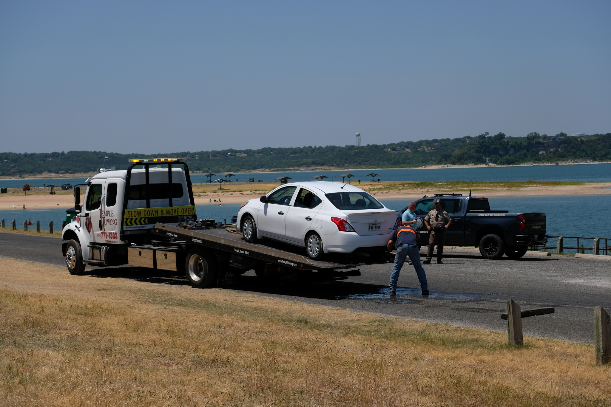 TEMPLE, TX - A white Nissan Versa is shown after being removed from Temple Lake on July 20, 2022. Law enforcement & rescue officials determined the vehicle was unoccupied. (Photo by James Ellis/ViewPoint Press)